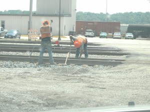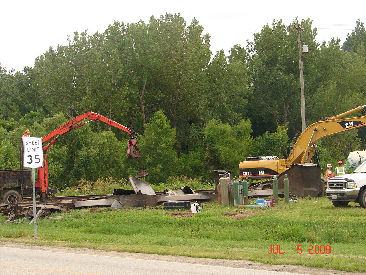 Richards Construction Company also has a railroad division, specializing in track maintenance, construction and repair. We own several pieces of machinery equipped with rail gear. We’re involved in most aspects of railroad track maintenance including derailment repair & clean-up, crossing rehab, track installation, surfacing, welding and large quantity tie replacement. We’re also involved in daily maintenance such as repairing track defects and replacing ties & rails.